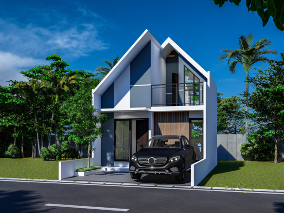 Desain modern minimalis dengan konsep mezzanine membuat ruangan terasa lebih luas dan nyaman. Selain itu, rumah dengan plafond ceiling tinggi ini juga lebih sejuk, sehingga cocok untuk hunian jangka panjang.