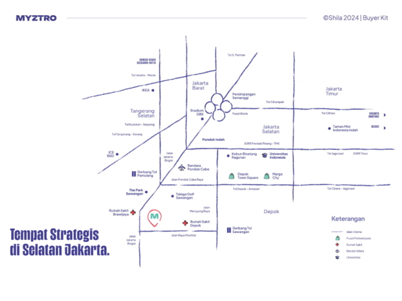 Salah satu keunggulan utama rumah Myztro Shila Sawangan adalah lokasinya yang strategis. Berada di kawasan Shila at Sawangan, cluster Myztro menawarkan akses mudah ke berbagai fasilitas penting dan pusat aktivitas di Depok serta sekitarnya.