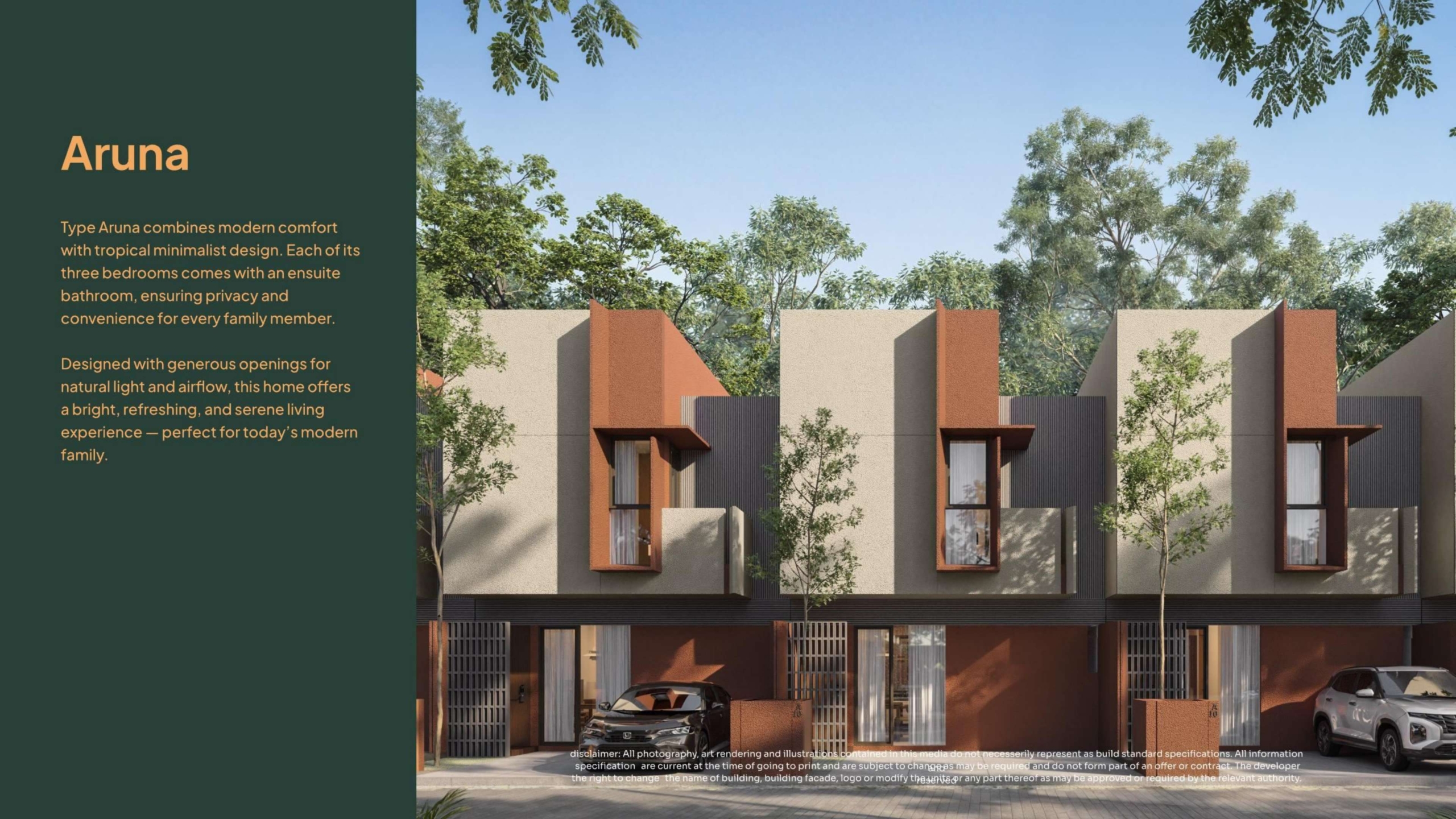 Di dalam site plan, tersedia beberapa tipe unit: Aruna, Aruna Plus/Hook, dan Aksara Special. Berikut detail sesuai brosur.