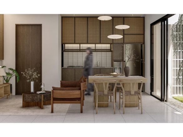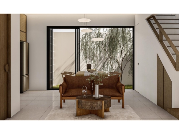 Desain interior Tipe Serenity mengedepankan tata ruang yang efisien dengan pencahayaan alami yang optimal, serta ventilasi udara yang baik. Ruang keluarga yang luas, kamar tidur yang nyaman, dan dapur modern menjadi nilai tambah dari tipe ini. Selain itu, dengan adanya carport yang mampu menampung dua mobil, penghuni tidak perlu khawatir dengan masalah parkir.