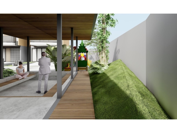 Dikelilingi oleh ruang terbuka hijau yang memberikan suasana sejuk, nyaman, dan mendukung kesehatan penghuni.