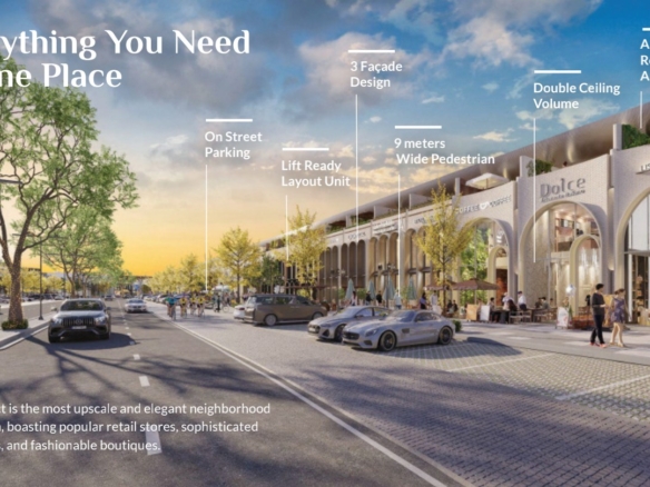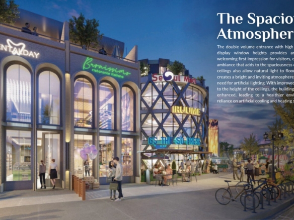 •Fasilitas Lengkap: Pedestrian luas, on-street parking, desain fasad unik, hingga rooftop alfresco area.