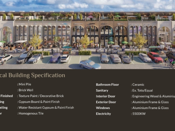 •3 pilihan desain fasad unik: Rustic Charm, Terra Brick, dan Elegance Beige, yang membuat setiap ruko terlihat eksklusif.
