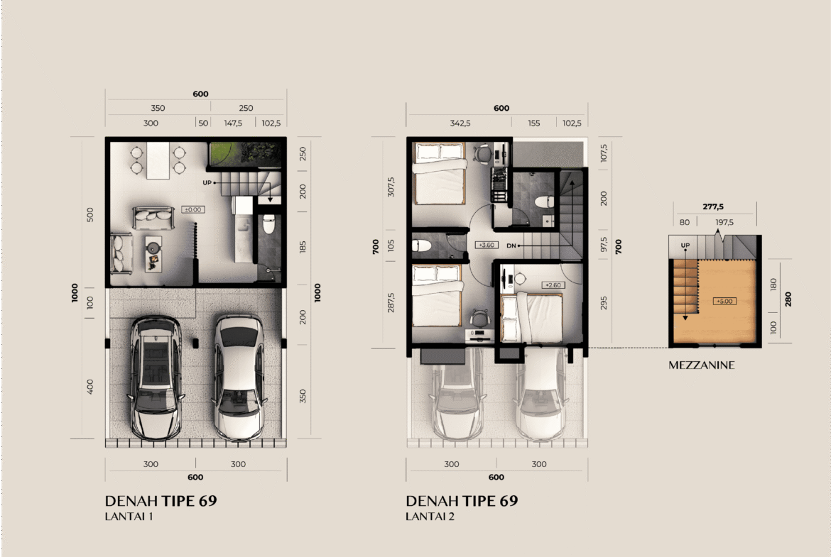 Dengan ruangan yang lebih luas, tipe ini ideal untuk keluarga dengan anak lebih dari satu. Konsep ruangnya memungkinkan penghuninya memiliki area privat sekaligus area bersama yang hangat.