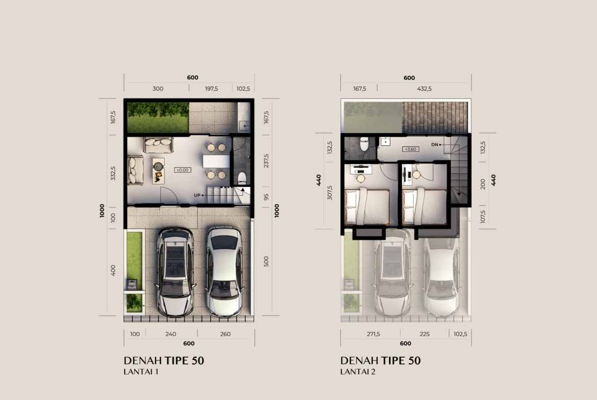 Tipe ini cocok bagi pasangan muda atau keluarga kecil yang menginginkan hunian praktis, nyaman, namun tetap memiliki ruang cukup untuk berkembang.